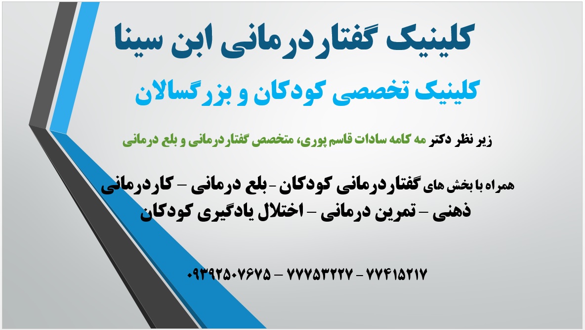 گفتاردرمانی در رسالت یکی از اهداف تخصصی “کلینیک گفتاردرمانی ابن سینا” می باشد. این کلینیک زیر نظر متخصص گفتاردرمانی، مه کامه سادات قاسم پوری، متخصص گفتاردرمانی و بلع درمانی اداره می شود.